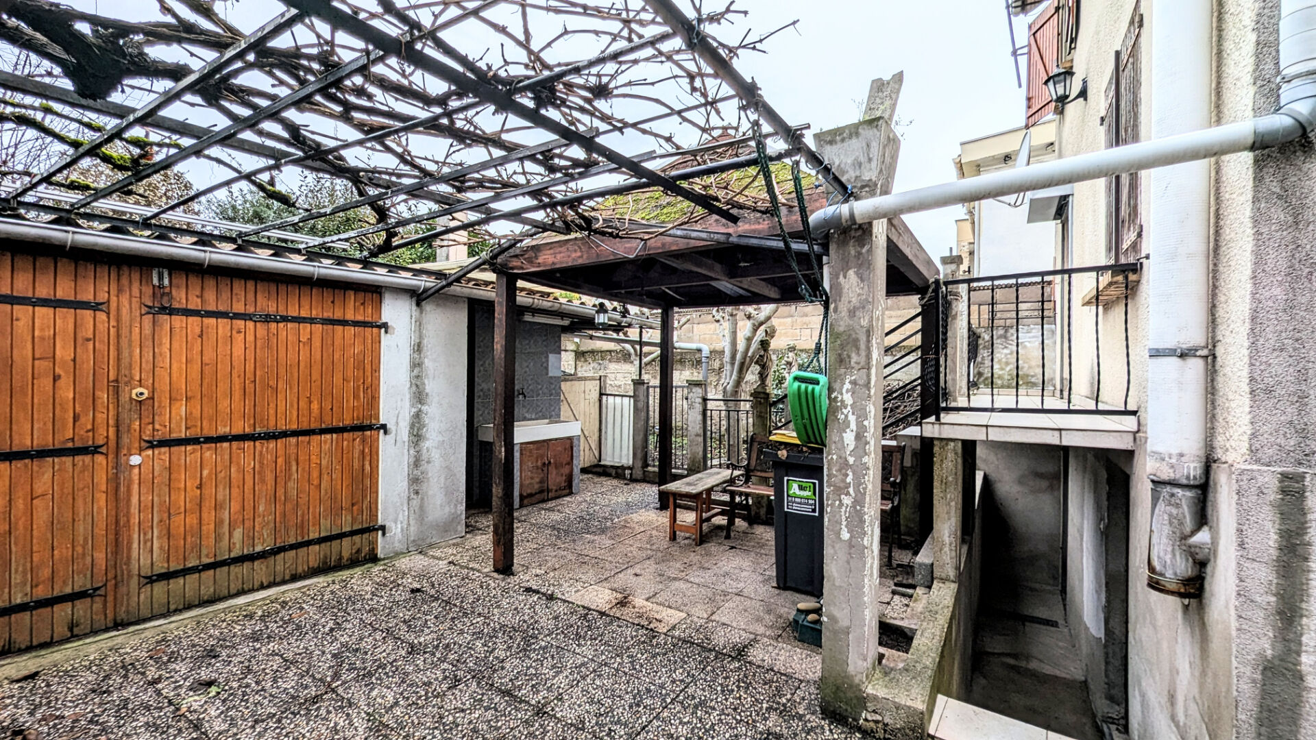 Una casa indipendente costruita su un terreno di 196 m² arretrato rispetto alla strada, comprendente al piano terra una cucina attrezzata chiusa, doppio soggiorno esposto a nord/sud, una camera da letto sul giardino, bagno con WC.